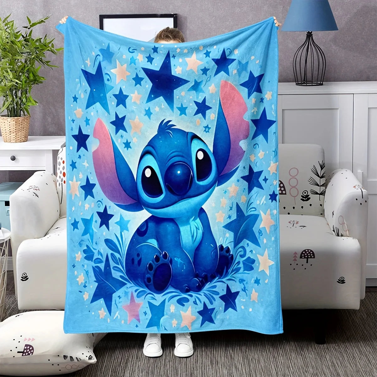 1pc Cozy Flannel Blanket Soft Warm Stitch Starry Night Flannel Blanket Print Machine Sofa Office Camping Travel and Home Decor